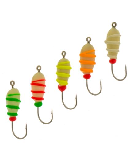 уралка – часто используется при ловле окуня. В специальных магазинах для рыбаков можно найти огромное количество самых разных безмотылок этого типа. Они отличаются по форме и оттенкам. Также у некоторых на крючке имеются бусинки;